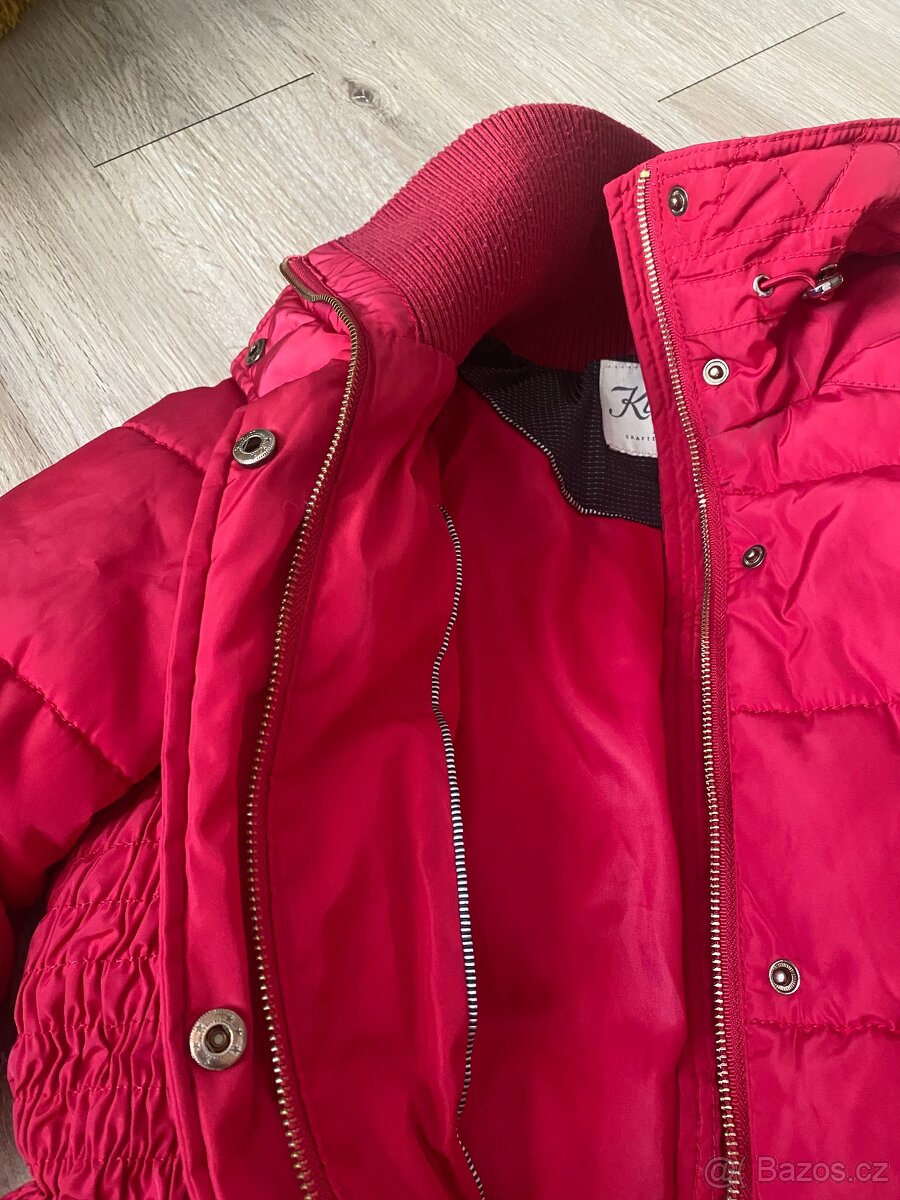 Krásná červená zimní bunda vypasovaná , po bocích řasená zapínání až ke krku jakoby dvojitý límec rukávy na zip taky dvojité vel M je teplá nosena ale stále top stav