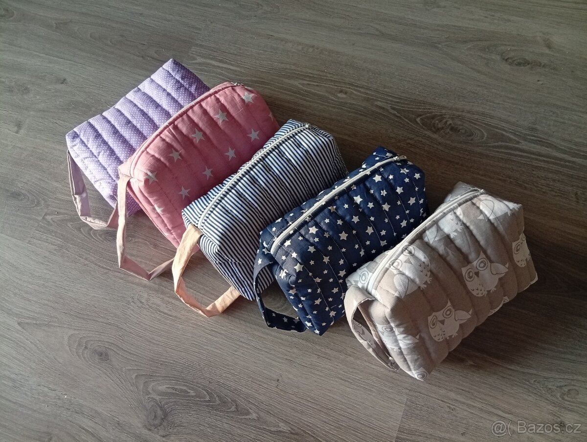 Kosmetická/cestovní taštička... rozměr 25x16x9 cm, ....na zip.... plněna vatelinem... Dostatečně pevná.....cena 250 Kč
