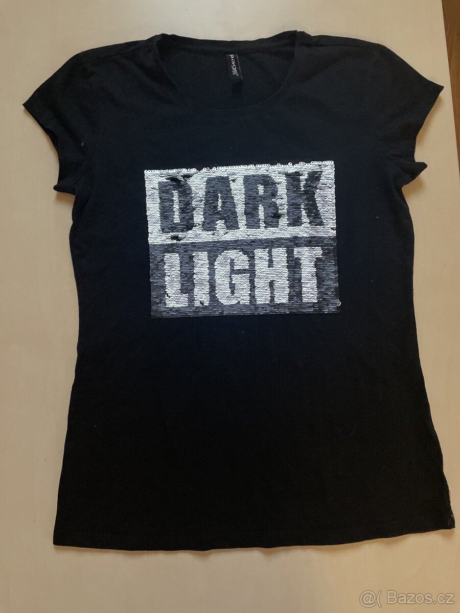 hol. nabízím k prodeji černé trikos měnícím obrázkem z flitrů, vel S, page one. Nošené, bez vad, krásné