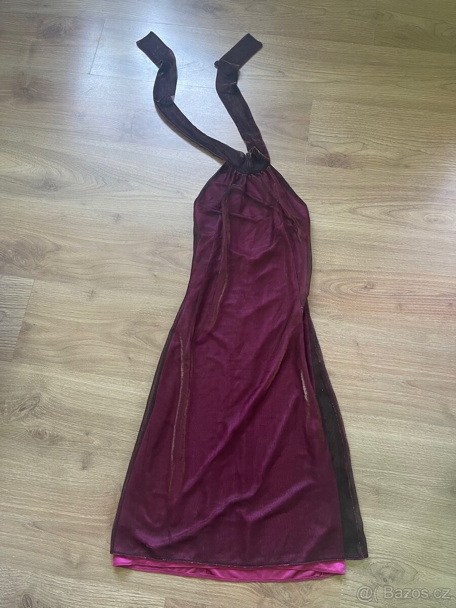 Velikost XS, nošené 1x, jako nové, krásné společenské šaty s holými zády, vínově červené, vhodné na plesy, do tanečních, ale i na jiné společenské akce