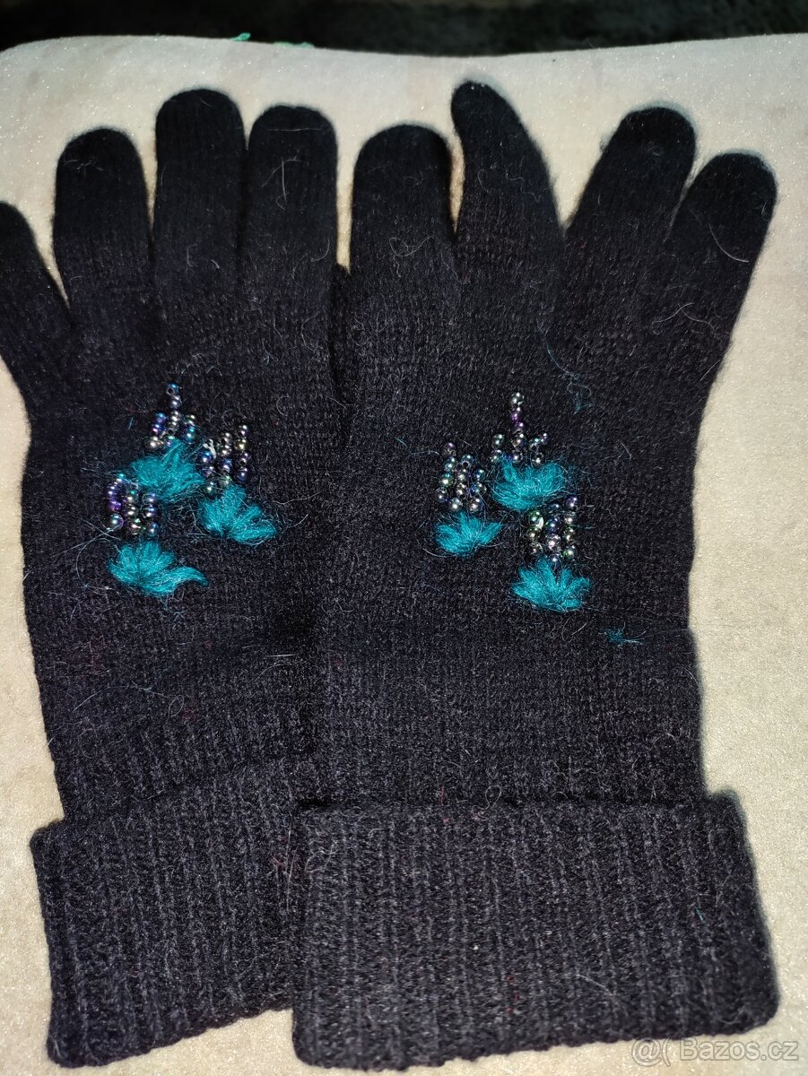 Příjemné jemné vlněné rukavičky zdobené korálky a výšivkou. Dají se ohrnout.