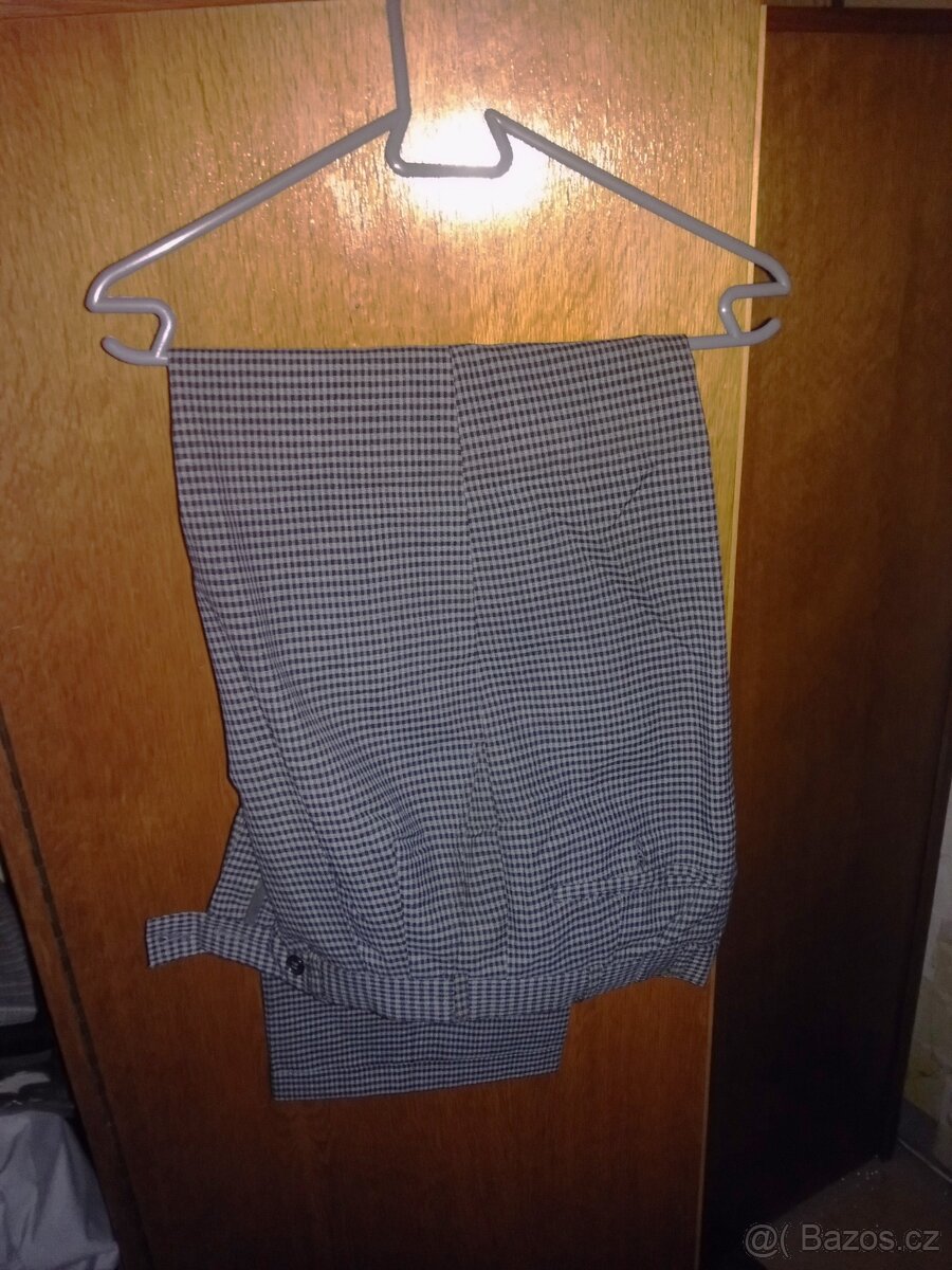 Prodám kostičkované,tesilové kalhoty.Obvod pasu 82 cm.