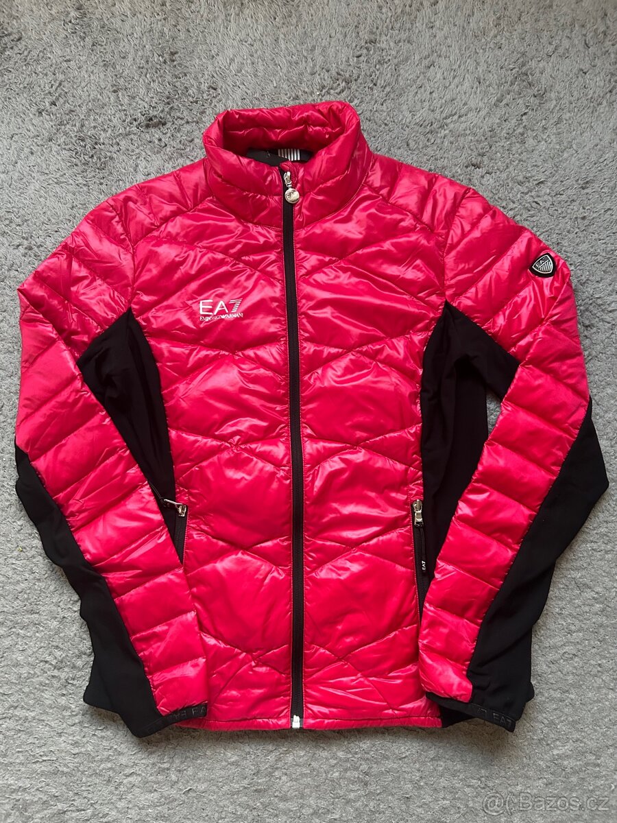 Emporio Armani péřová bunda. Velikost XL ale řekla bych, že sedí na L, hřejivá. Výrazná růžová barva. Kachní peří. Rozměry: délka 66cm, přes prsa 50cm. Nová bez vysačky