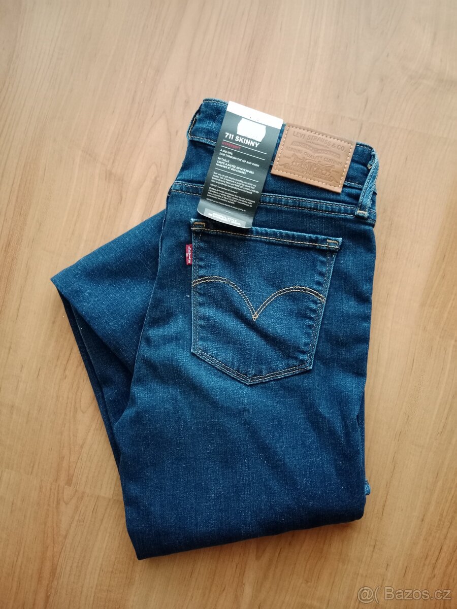 Dámské rifle skinny 711 vel. 26/30, střední pas. Tmavě modré. Úplně nové.