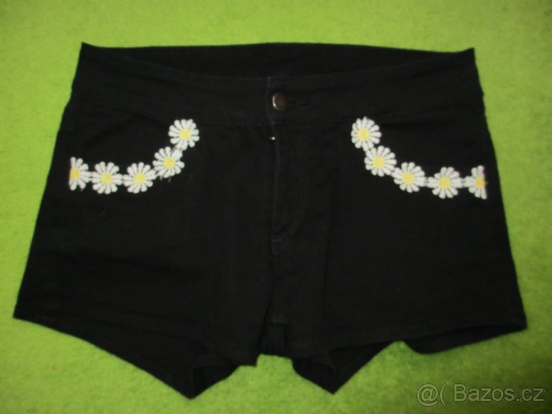 Černé šortky s kopretinami, zn. HM