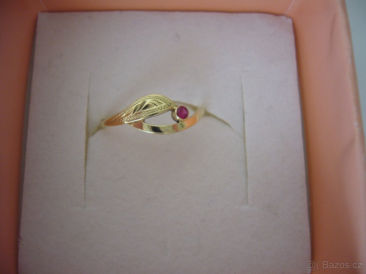 Prodám nový zlatý prstýnek 585/1000, s červeným kamínkem, velikost 49, puncováno. Cena 2900,- Kč.