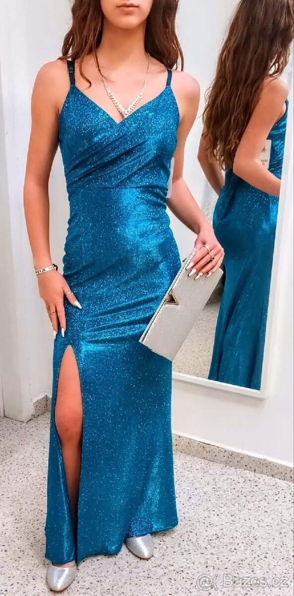 NOVÉ plesové šaty TŘPYTIVÉ TYRKYSOVÉ.