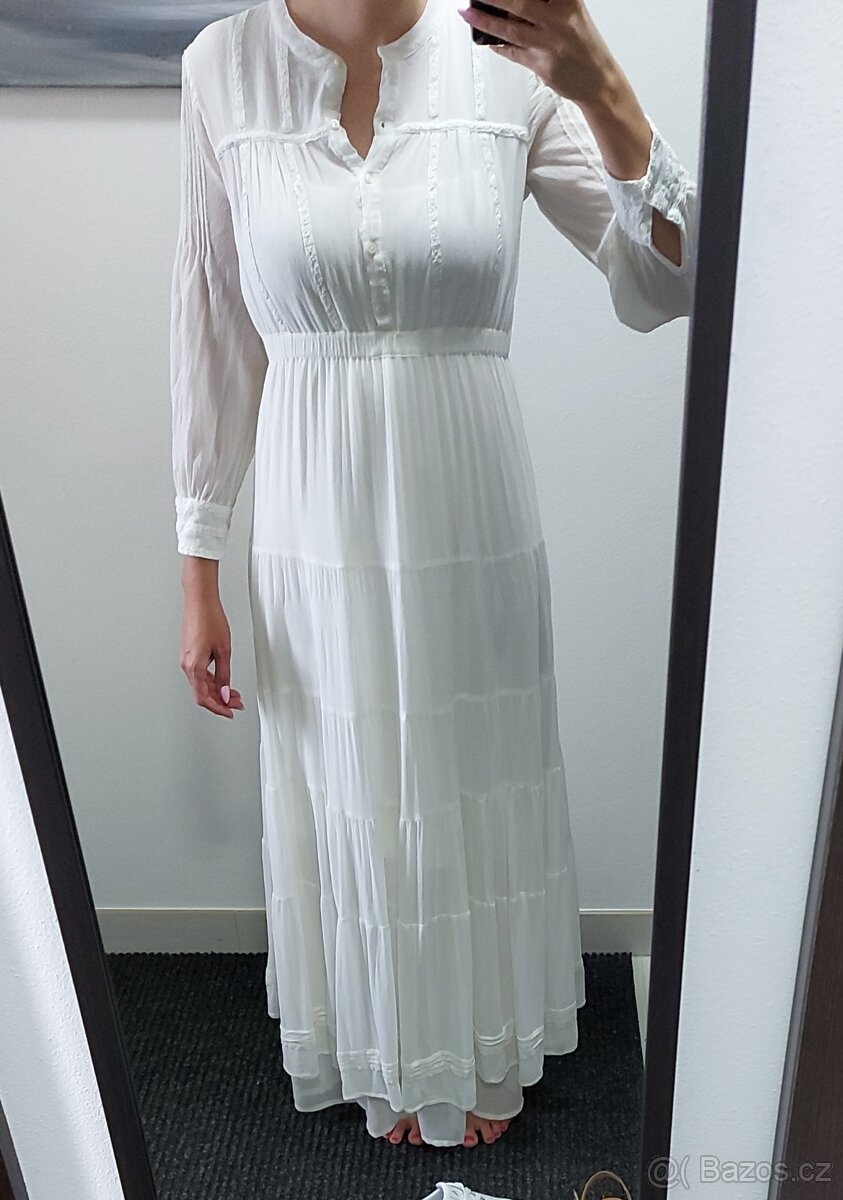 Bile sifonove saty zn. Mango, parkrat oblecene, lehce pruhledny material, je k nim i spodnicka. Velikost S, muze byt i na XS. Postovne nebo zasilkovna 79Kc.