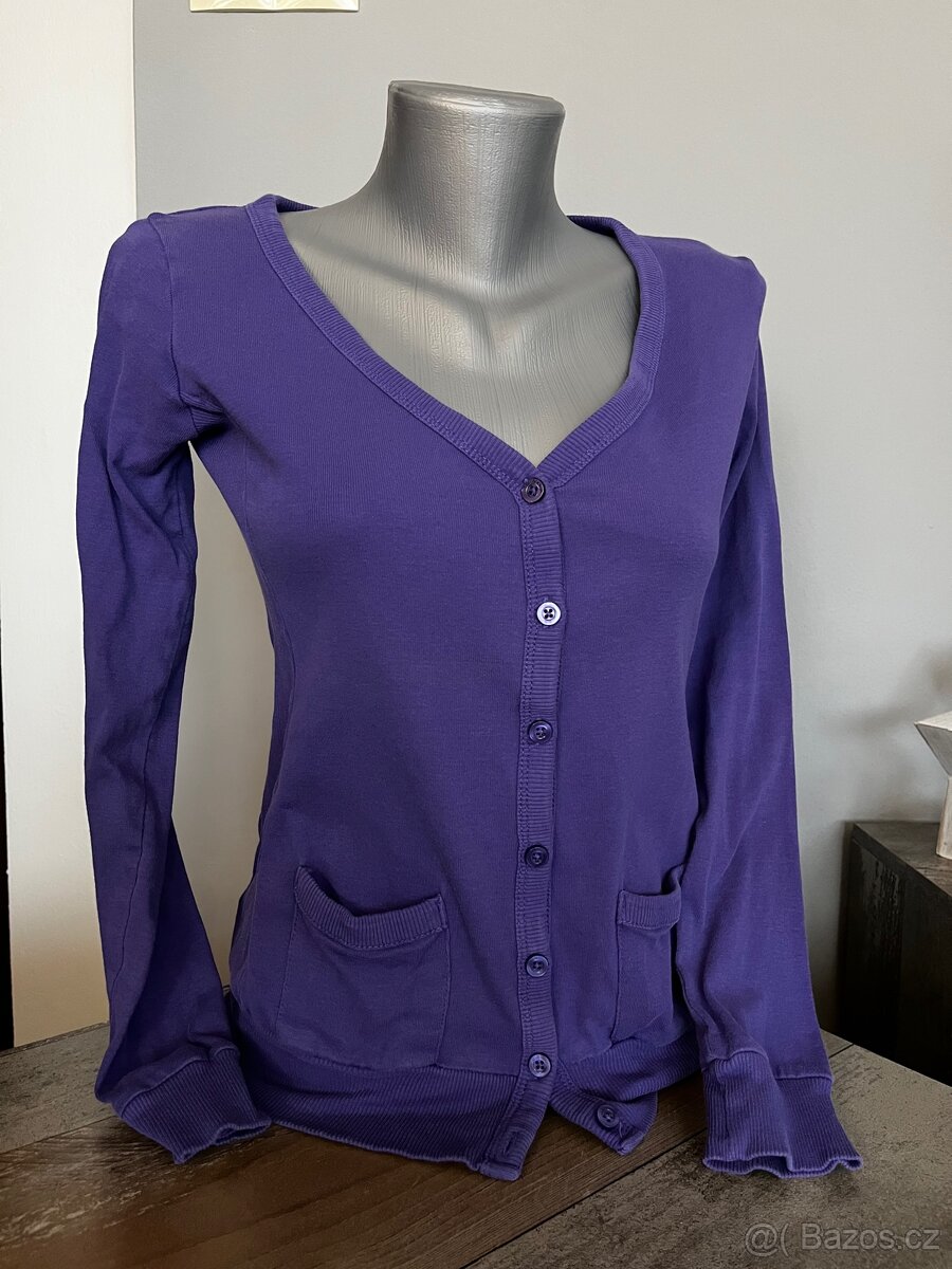 Fialový svetřík. Nošený, ale pořád moc hezky. Velikost uvedena S.