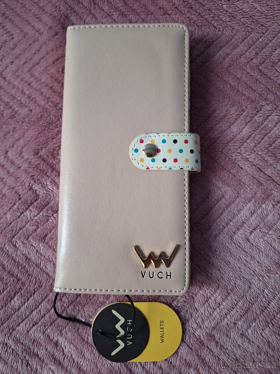 Nová béžová peněženka Vuch. Přihrádky na karty, dvě kapsy na bankovky a jedna kapsa na drobné na zip. Rozměry délka 19cm, šířka 9cm. Předání možné v Praze. Komunikace pouze přes SMS zprávy.