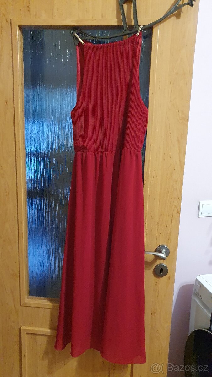 Červené šaty z lehkého materiálu, v horní části nabírané, velikost M