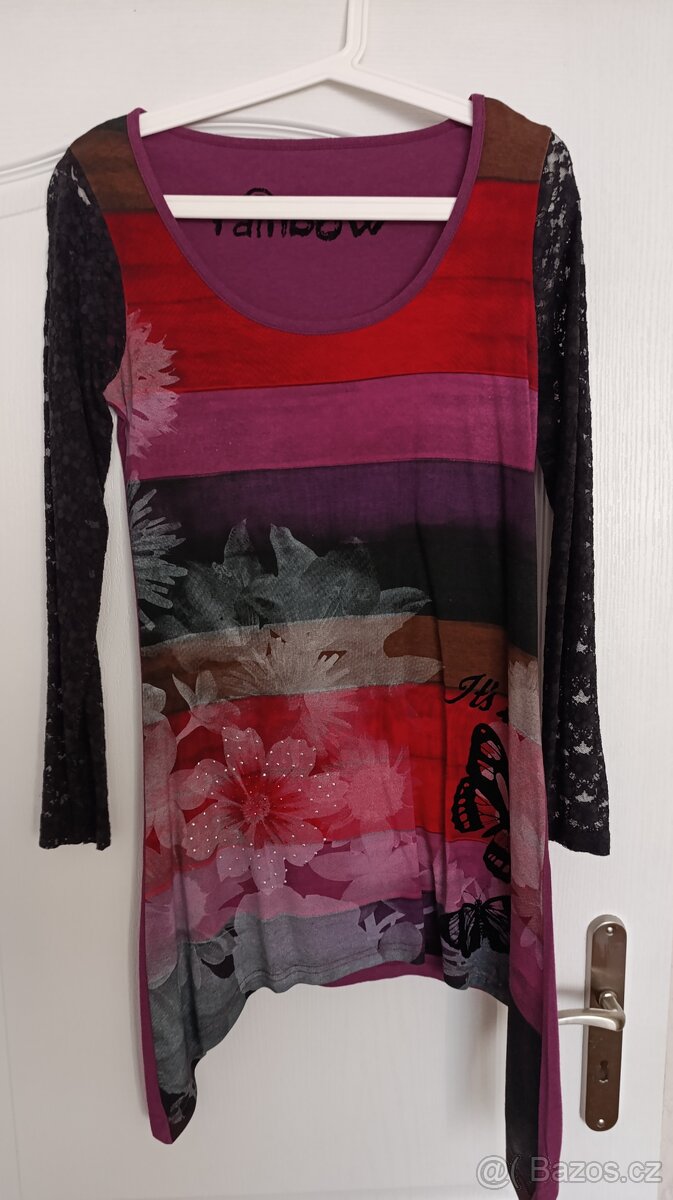 Tunika Desigual, vel. M. Nošená, ve švu krajky lehce povolují gumičky - viz detailní foto. Jinak ale krásná. Černo-bílé tuniky H&M a Orsay vel. 40, nošené málo, bez vady. přední díl polyester, rukávy a zadní díl lehká bavlna s elastenem.