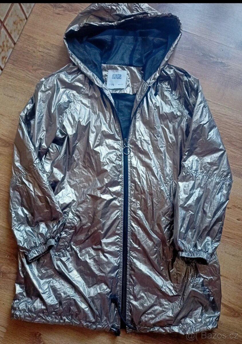Lehká bundička, ideální na přechodnou dobu , hodně prostorná,v pohodě se pod ní vejde svetr.Dole šňůrka na stažení.párkrát na sobě, zvláštní zlatavá barva