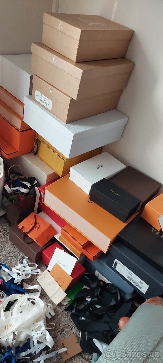 Značkové krabice různých značek. Fendi,Louis Vuitton, Gucci, Dior ,Hermés, Versace, Saint Laurent, Dolce Gabbana, Christian Louboutin...... a další