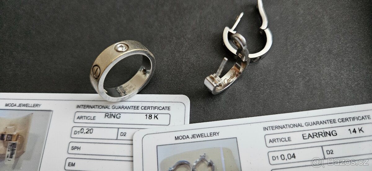 Prodám nenošené náušnice a prsten Cartier. Původní cena 200 000,-kc