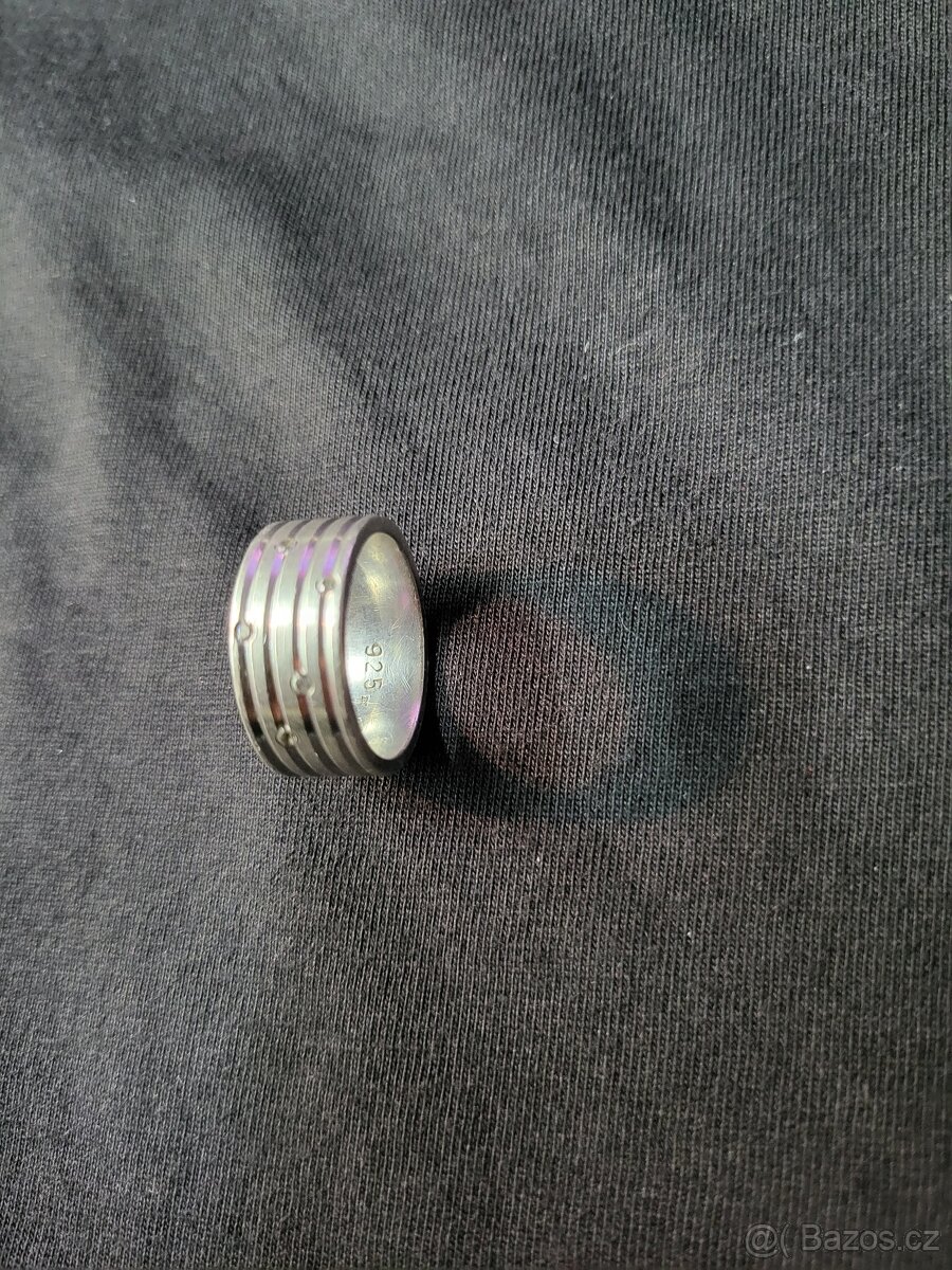 Predám strieborný prsteň 925/1000 so vsadenými zirkónmi v počte 5 ks s nepravidelným umiestnením.
