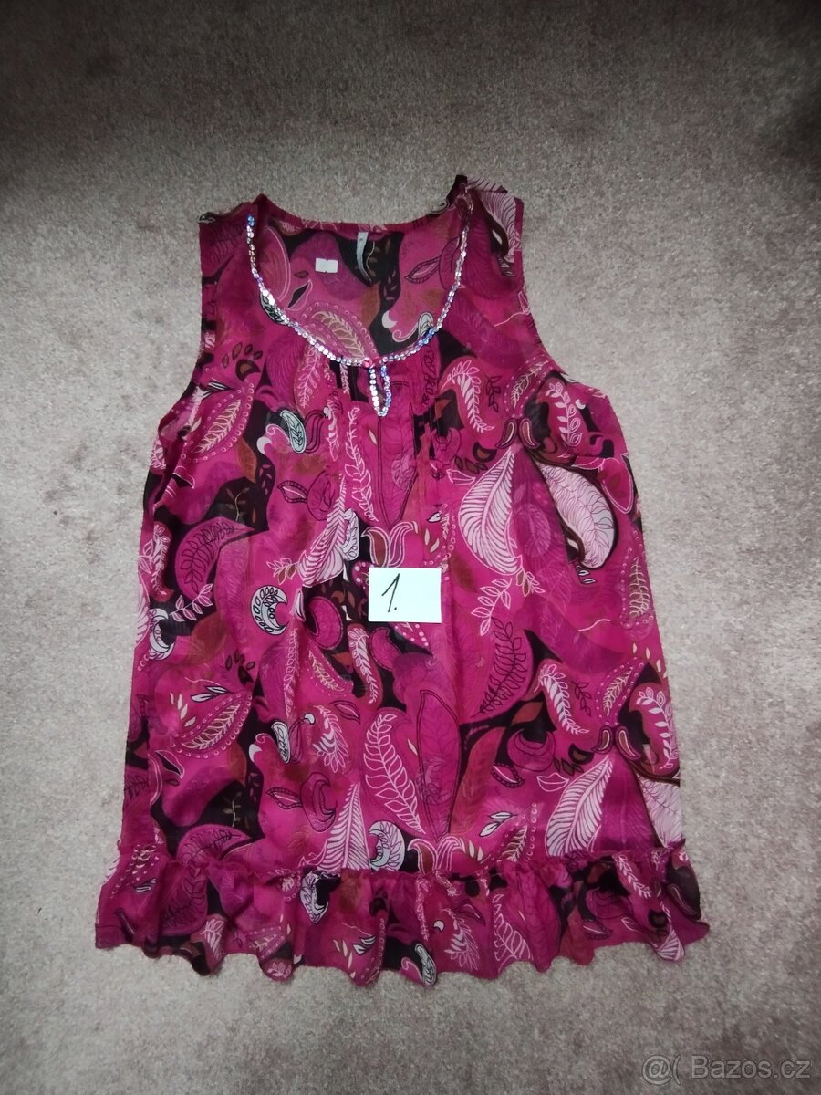 Prodám různé topy, tuniky, košilovè halenky a vesty. Všechny sedí na velikost L. Cena za kus je 70,- plus zasilkovna nebo osobní převzetí.