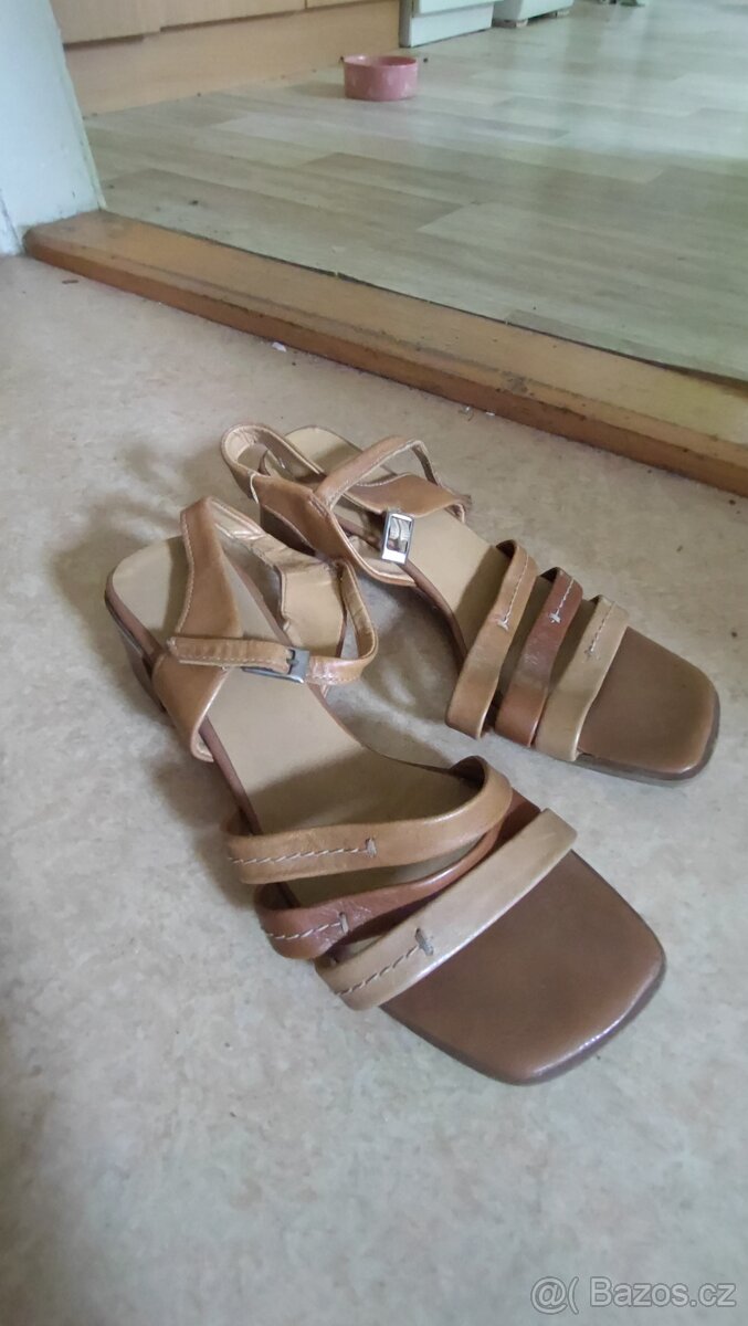 Málo nošené sandálky na podpatku. Dobrý stav. Velikost 39. Vypadají hezky na noze. Délka stélky 25,5 cm a výška podpatku 5 cm.