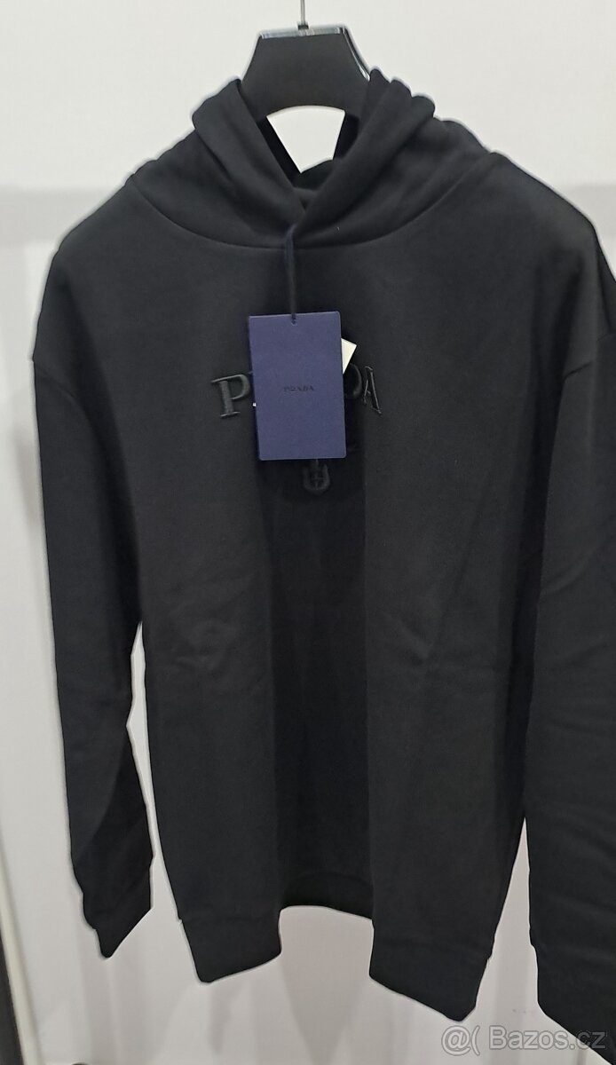 prodam panskou mikinu s kapuci zn.PRADA, uplne novu s vysačkama, nejnovši model , model :Prada Embossed Logo Hoody Black, černej farby s logem, 70% bavlna, ,30% polyamide, velikost M, rozmer vid foto, delka, širka medzi pazuchy a delka rukavu, cena 3400 kč + doprava zdarma