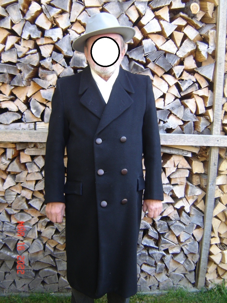 Raglán na postavu cca 175 cm/70 kg, starý asi 75 let, černý, velmi kvalitní materiál, výborný stav, nepoškozený. Můj otec se v něm ženil.