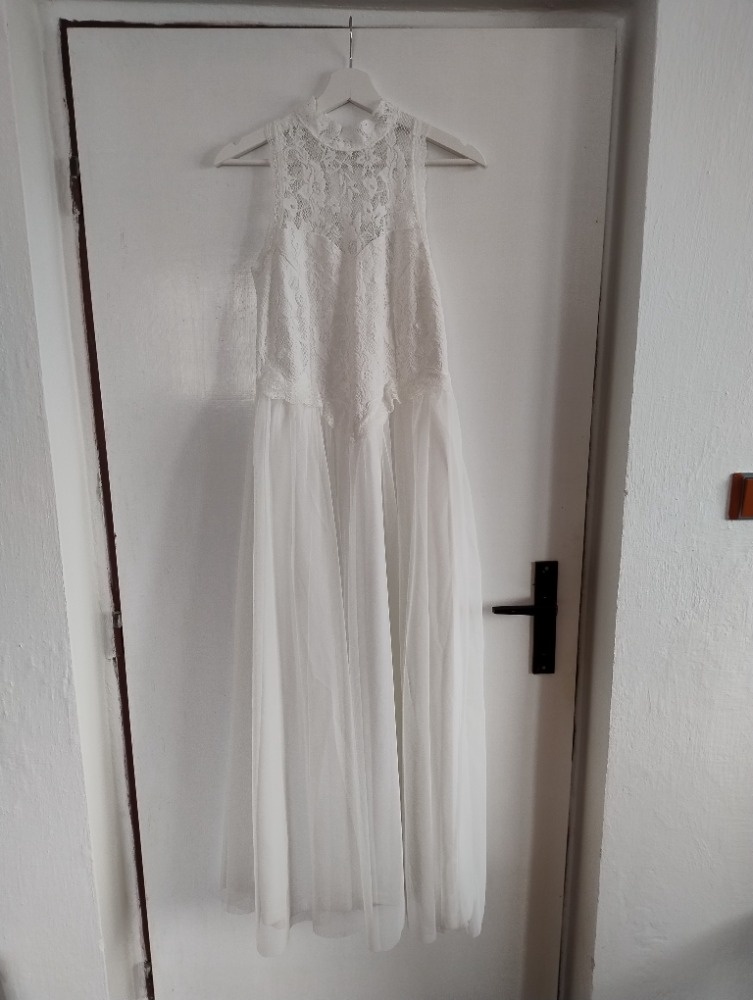 Prodám plesové šaty barvy bílé na výšku postavy 162 cm, velikost 32. Zasílám balíkovnou, v případě dopravy je cena + 79,-.