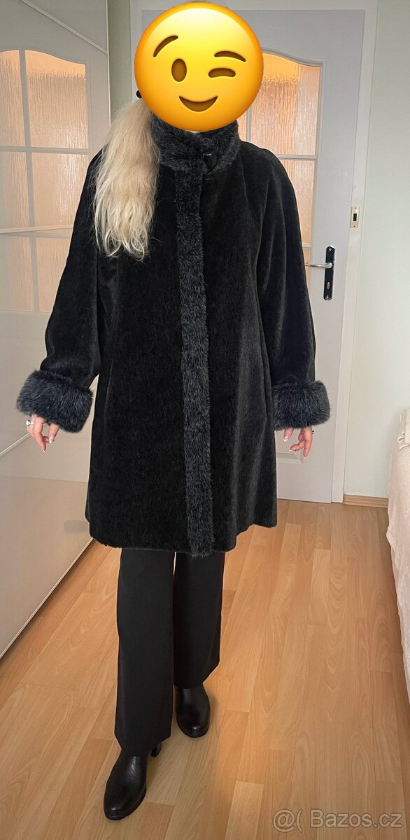 Dámský kabát / kožich vel. 34–36 - [13.2. 2026]Prodám elegantní černý kabát s kožešinovým lemem.