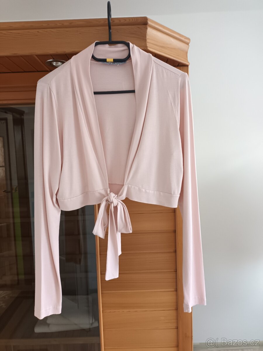 Prodám růžové,dámské bolerko ve velikosti M s vázačkou.Bavlna + elastan.Nenošené,nové.Pěkně vypadá na šatech,ale i k sukni a kalhotám.Zašlu,nebo osobní předání