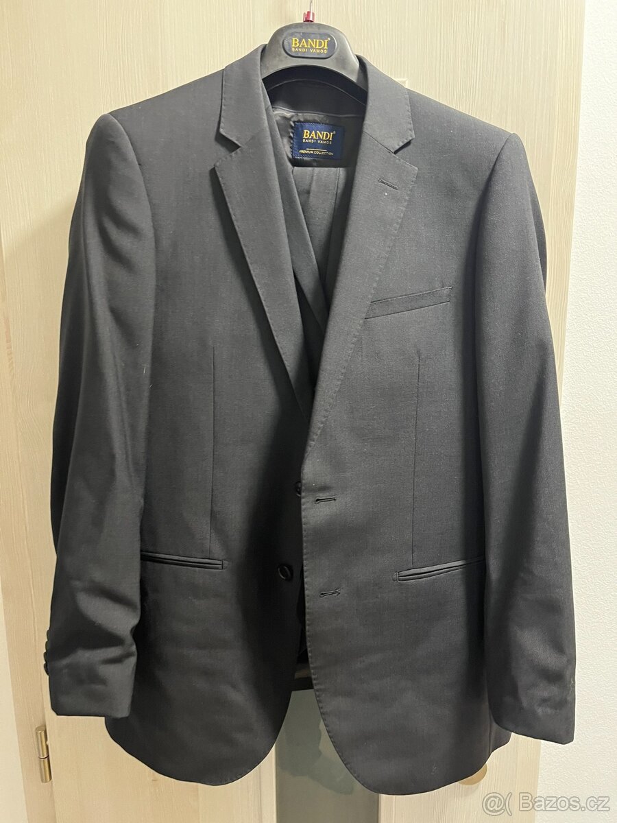 Vlněný oblek + bavlněná košile + vak. Cena případně dohodou.