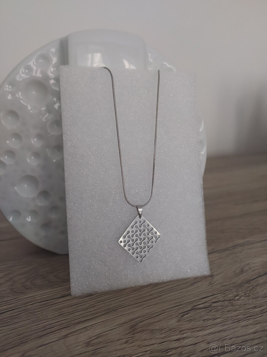 Řetízek s přívěskem , ocel ve stříbrné barvě . Délka řetízku 45+5 cm , přívěsek 2x2 cm . Nový