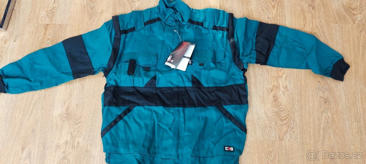 Monterková blůza zelená nová vel.50 - 150,- Monterkový komplet šedočervený vel. 56 monterk šedé se šrákama a blůza šedá s červeným. na bl§ze flíček viz foto a je tam proužek od ležení ve skříni. Pod pažemi větrání, není roztrhlé, je to nepoužité je to tam schválně. cena za komplet 350,-Kč