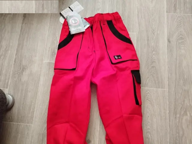 Uplně nové montérkové kalhoty (červené) vel.: 38/170 1x...40/170 1x...cena 200,-Kč/ks