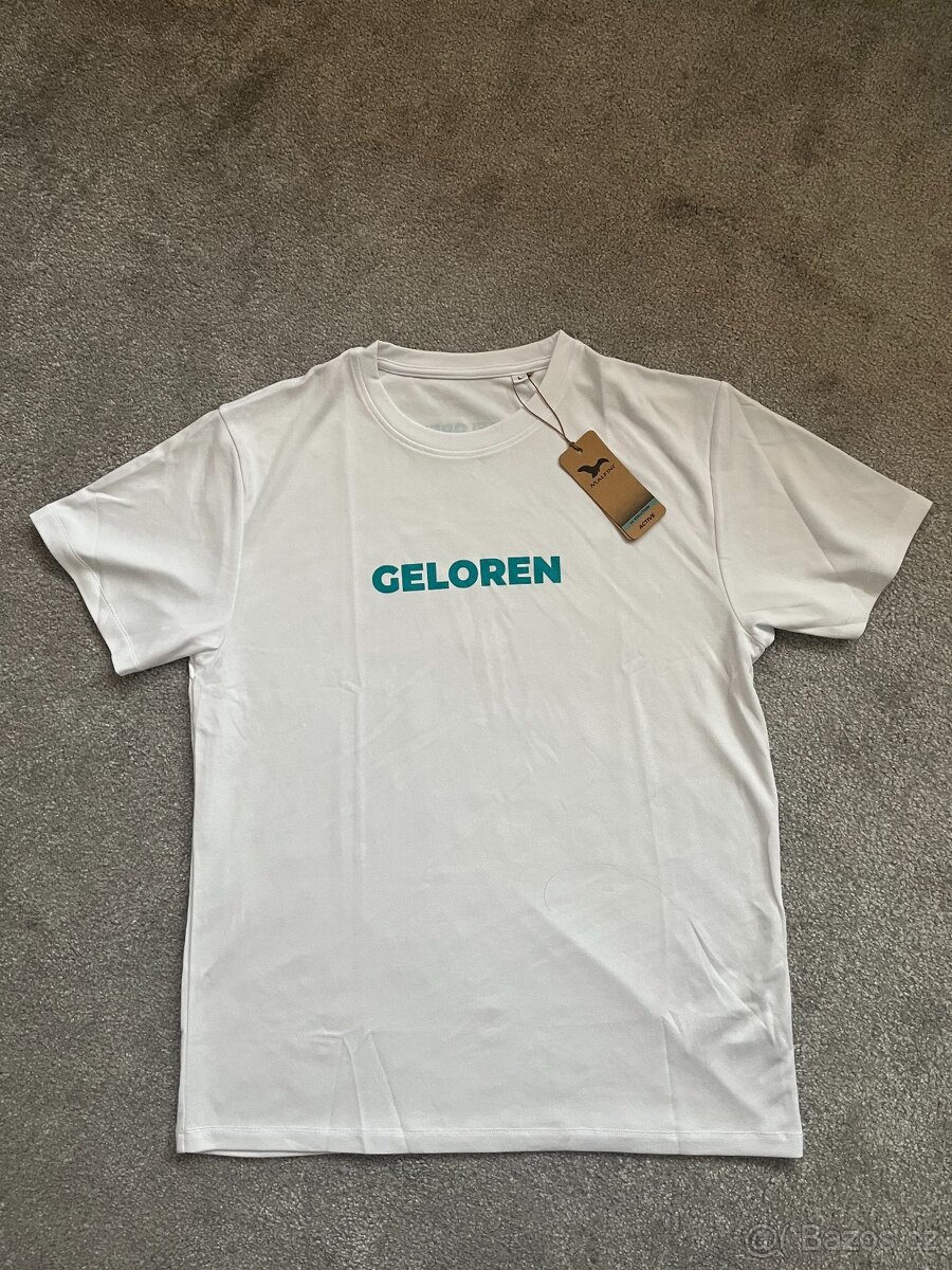 K prodeji nové sportovní tričko s nápisem na přední i zadní straně.