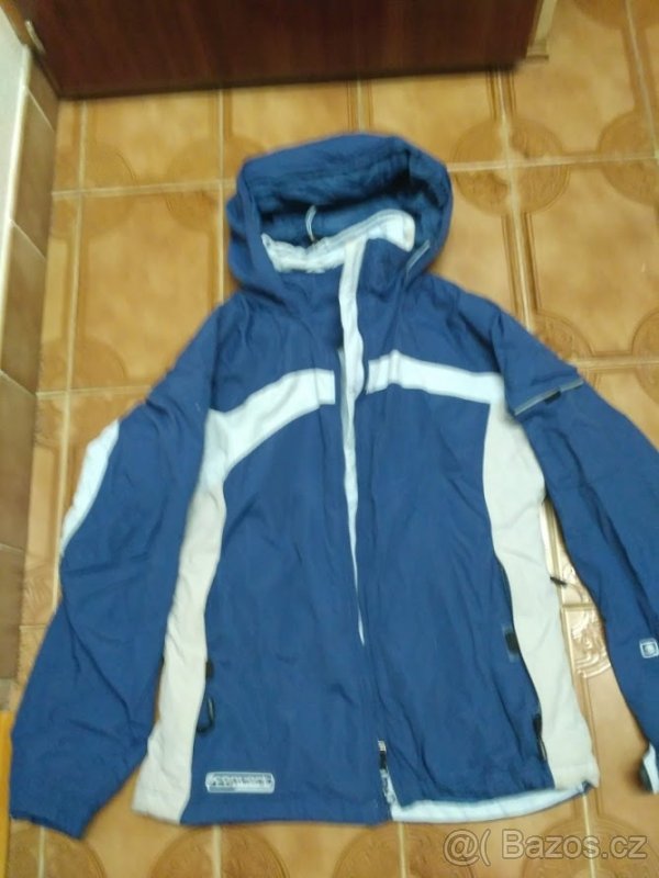 Dobrý stav, vnitřní kapsa na zip, větrání na zipy pod rukávy, vnitřní elastický pás proti sněhu. Kapsa na 1 rukávu. Povrchová voděodolná úprava. Cena včetně poštovného.