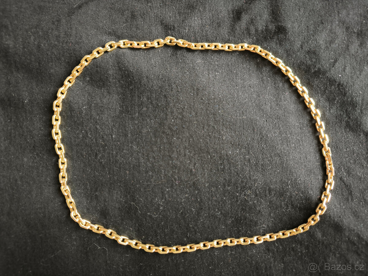 Ručně pilovaný,plný ,váha 100,81 gr,délka 62 cm,bez zapínání přes hlavu.Šířka pilovaných oček řetízku je 6,00 mm,délka oček 9,00 mm. Koupeno ve zlatnictví v CZ,včetně puncu.Pravost možno ověřit.Platí do smazání