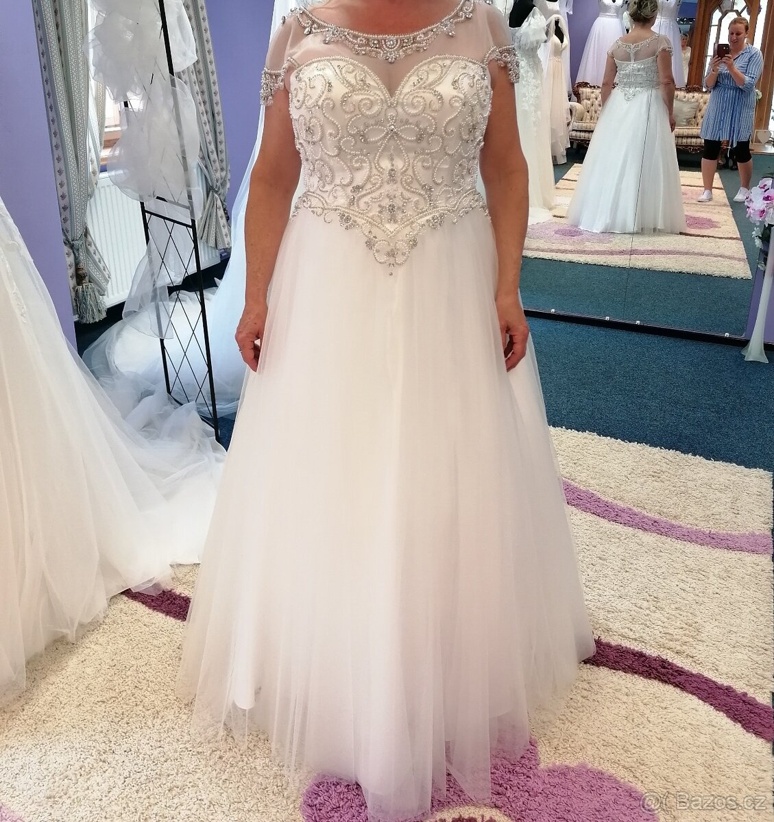Svatební šaty šněrovací - [8.2. 2026]Širší ramínka, krajkovaný korzet, vzadu na šněrování.