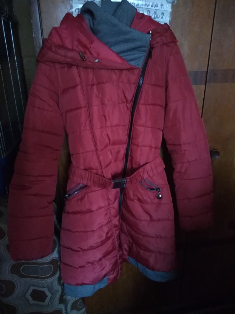 Prodám bundu zimní prošívanou, červená se šedou, má pásek. Velká kapuce, psaná vel.M. V zimě krásně hřeje. Délka 85cm, průramky 2x44cm (88cm), rukáv 60cm. 2x vnější kapsa velké, hlavní zip je oboustranný (není původní, musela jsem nechat vyměnit).