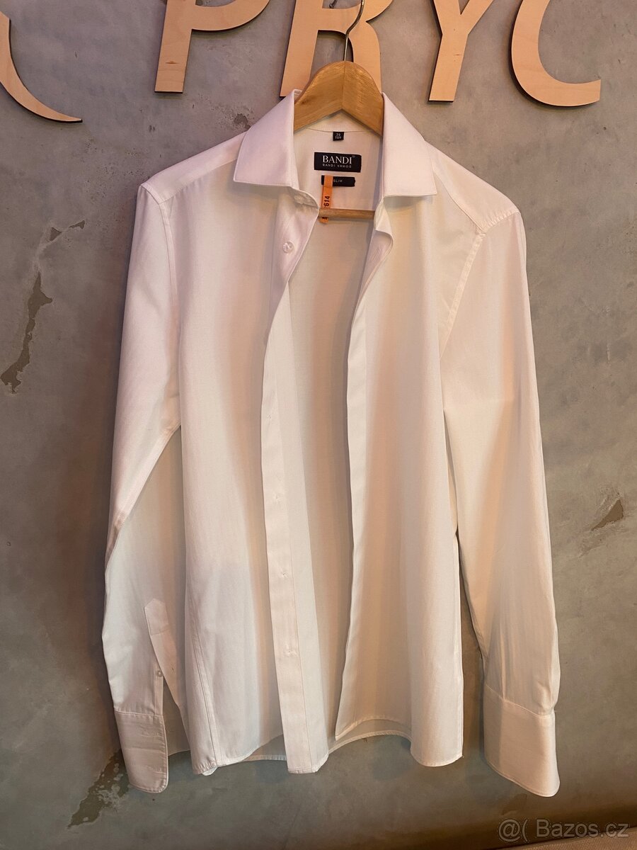 Bílá slim košile Bandi - [8.2. 2026]Nošená, bílá barva, dobrý stav, bez vad, velikost 41/182, odpovídá M