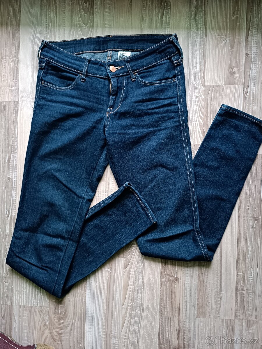 Prodám rifle skinny s nízkým pasem, velikost 25/32, na štíhlou postavu cca 165-168 cm. Barva tmavě modrá, pěkný stav, nevyšoupané, neponičené..