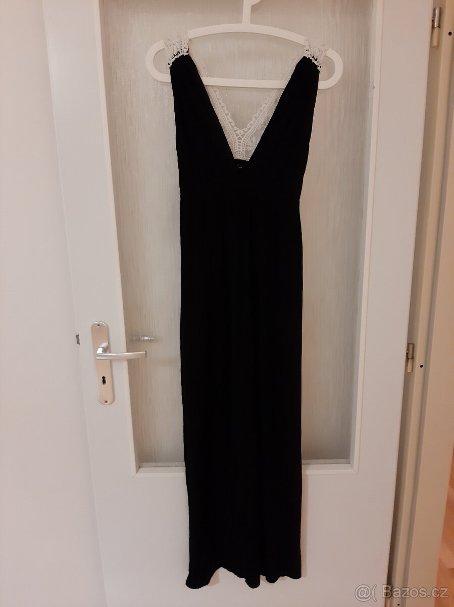 Černé bavlněné šaty značky Agua. Bílá krajková ramínka. Délka cca 130 cm. Velmi dobrý stav.