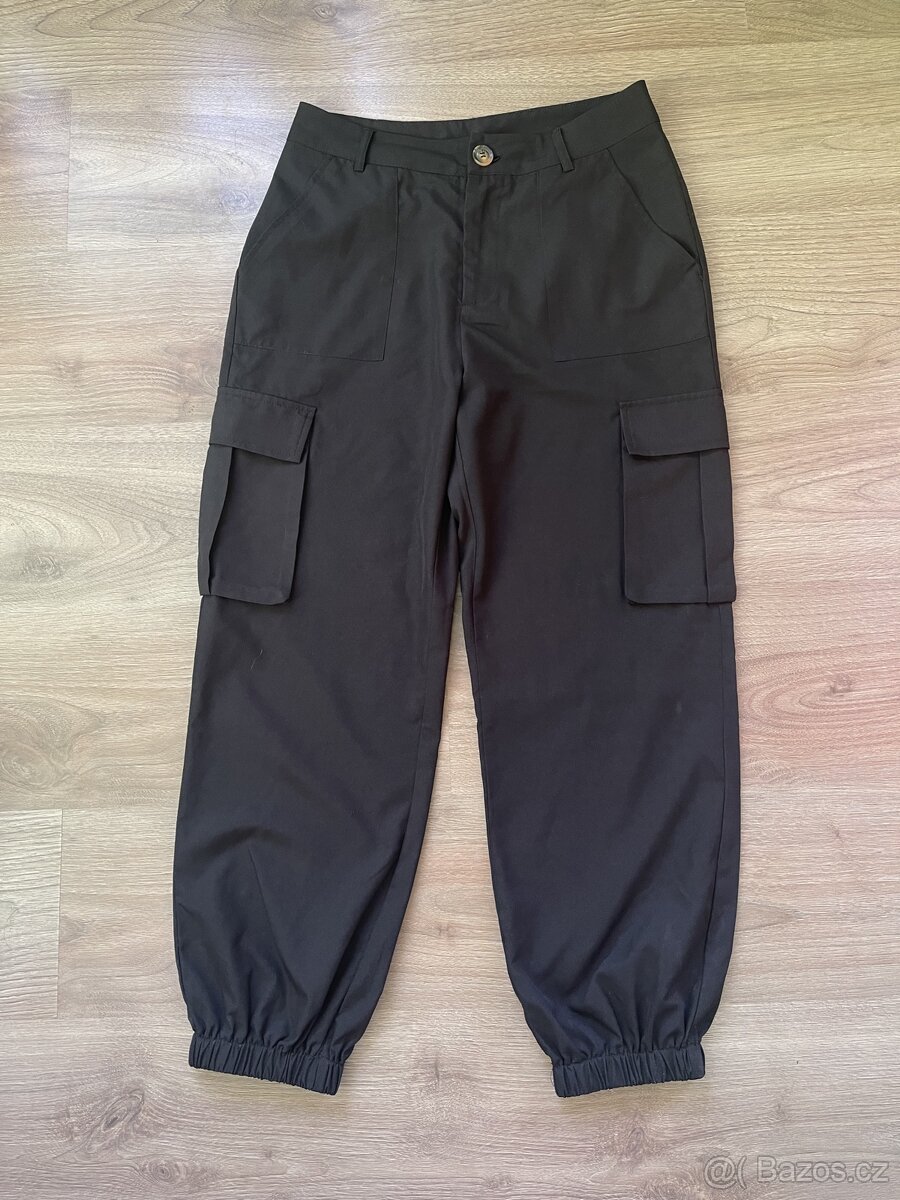 Úplně nové, krásné plátěné černé harémky, velikost M