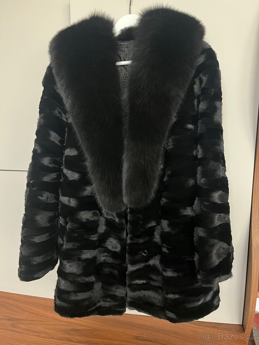 Prodám kožešinový nenošený kožich s límcem z lišky vyrobený na zakázku. Velikost 42-44. Dvě kapsy a dva háčky na zavírání. Původní cena 1500 euro.