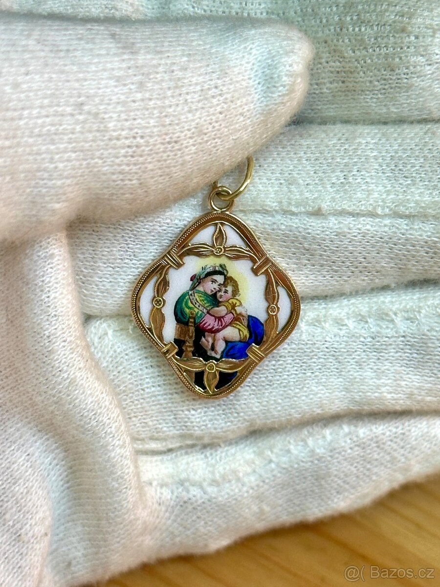 Zlatý přívěsek madonka 1,25g, 14 kt, 585/1000 - [2.2. 2026]výška s očkem 31 mm, šířka 11,5 mm.