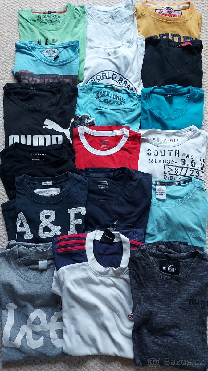 Prodám balík 18 pánských triček ve velikostech S–M, ideální pro další prodej.