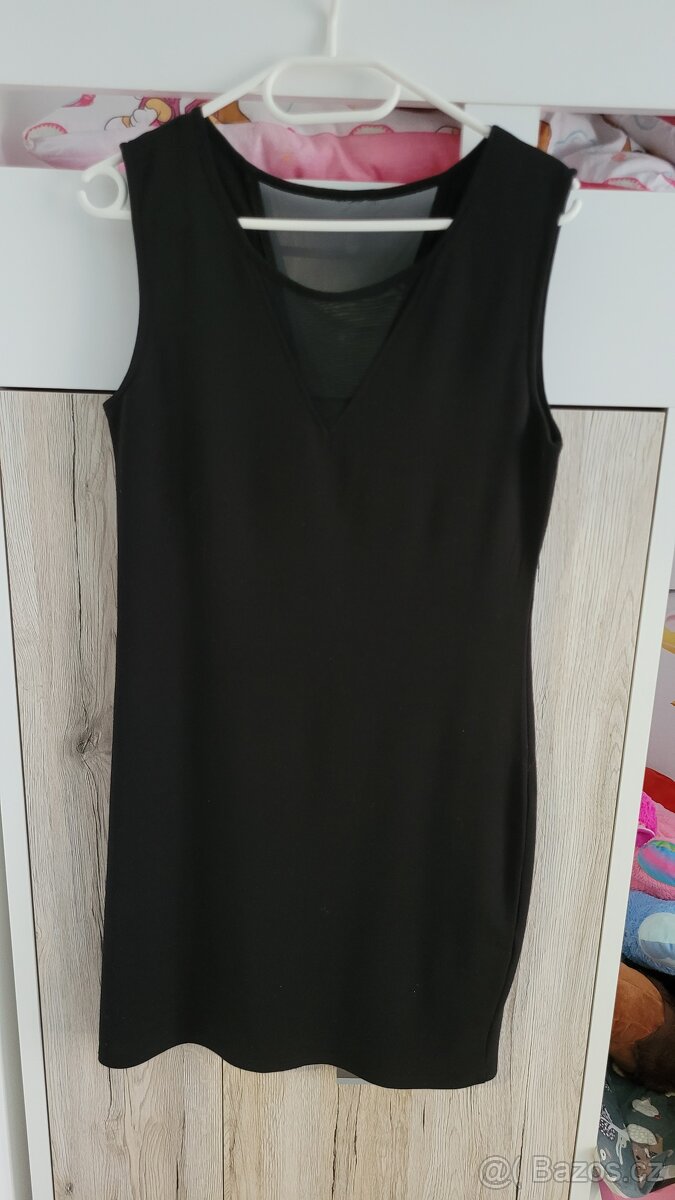 Černé krátké šaty, zn. Clockhouse - [23.1. 2026]do véčka, vel. S, délka v klidu cca 83 cm, přes prsa v klidu cca 37x2 cm, pružné, jemná pletenina