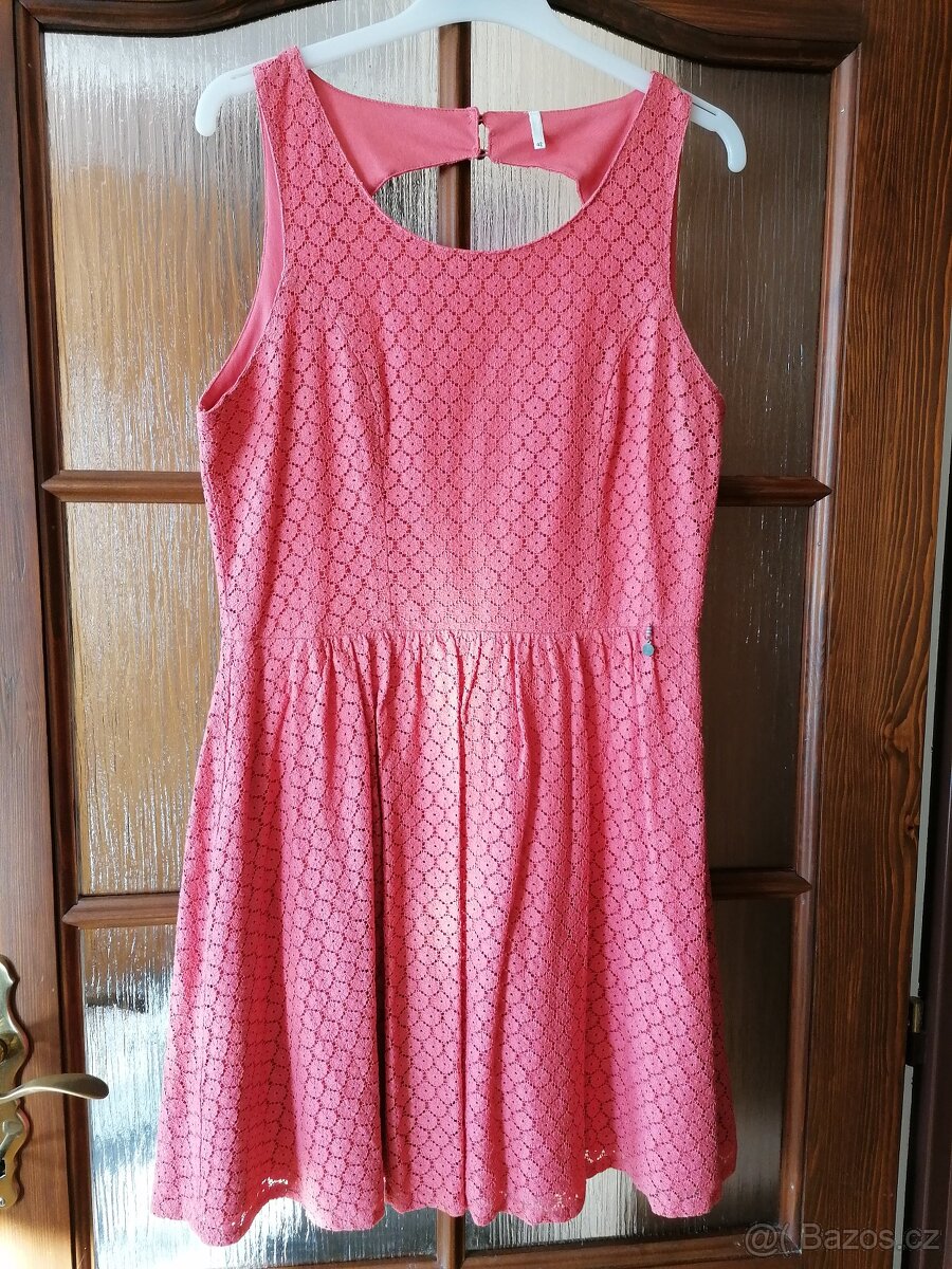 Krajkové šaty ONLY vel. 42, barva korálová, na zádech zajímavě vykrojene, zip na boku. PC 1200,-