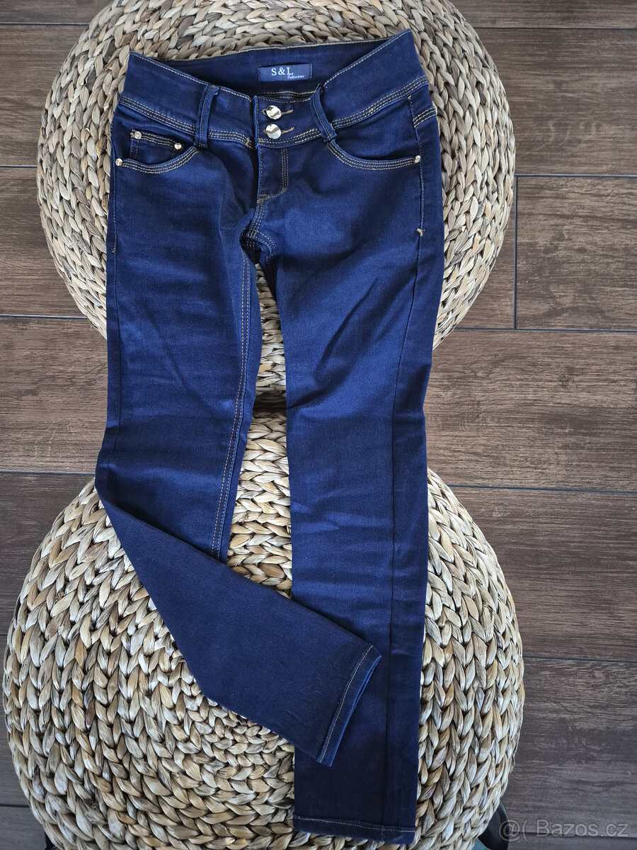 Prodám nenošené džíny značka S&L,velikost 34.Míry: vnější délka nohavice 86 cm, vnitřní délka nohavice 67 cm, obvod pasu v nenataženém stavu 2x 33 cm,výška předního sedu 18 cm, výška zadního sedu: 28,5 cm.Materiál svrchní látka: 97% bavlna, 3% elastan.Cena 350 Kč + Zásilkovna nebo osobní předání v Poličce.