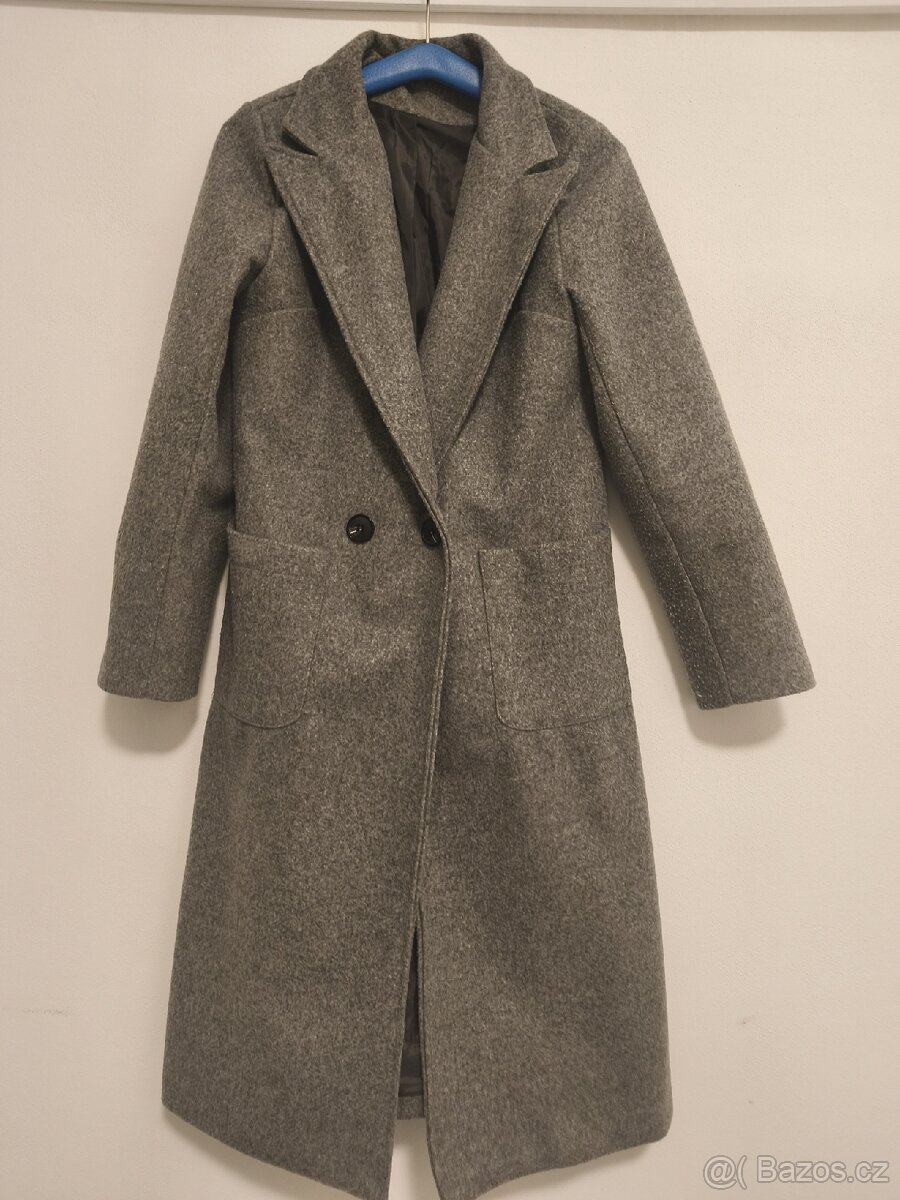 Kabát - [28.1. 2026]Nabízím dámský šedý kabát RESERVED – Wool Blend, velikost EUR 36 / UK 8 (odpovídá cca 36/S). Delší rovný střih ke kolenům, klopy, zapínání na dva knoflíky, boční kapsy, podšívka. Kabát je nový, nenošený, pouze bez původní visačky, bez poškození. Velm ...