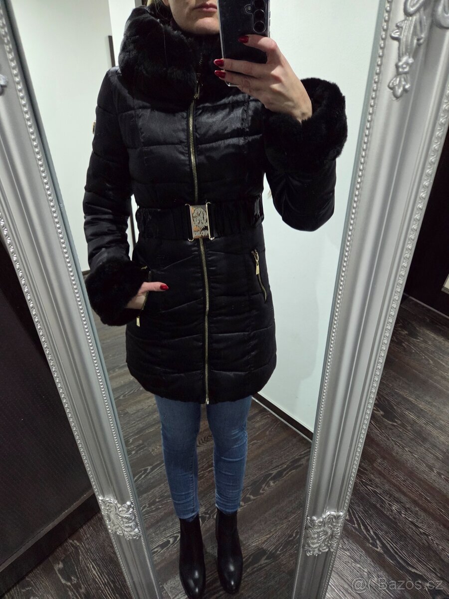 Cerny zimni kabat Mayo Chix, v perfektnim stavu, velikost S, sedi i na XS. Vypasovany strih, v pase pasek na pruznou gumu se zlatou sponou, odnimatelna kozesina na rukavech i na kapuci. Kozesina je prava. Kabelka Michael Kors na fotce je take na prodej. Balikovna nebo zasilkovna 79Kc.