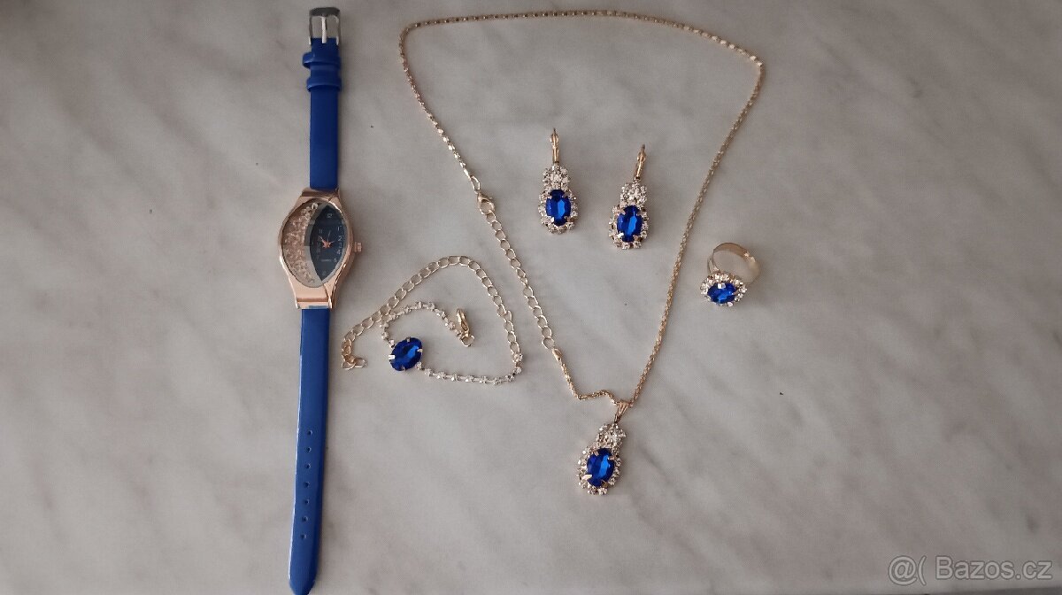 Nabízím sadu nové bižuterie. Krásné elegantní dámské hodinky, náušnice, řetízek, prstýnek a řetízek na nožku či ručku. Cena za sadu pouze 300,- Kč. Zasílám přes zasilkovnu. Vhodný dárek.Tel.: 721810977.