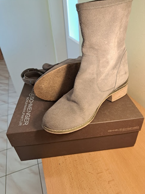 Prodám dámské značkové semišové kozačky velikost 38. jen málo nošené. Barva kůže šedá.